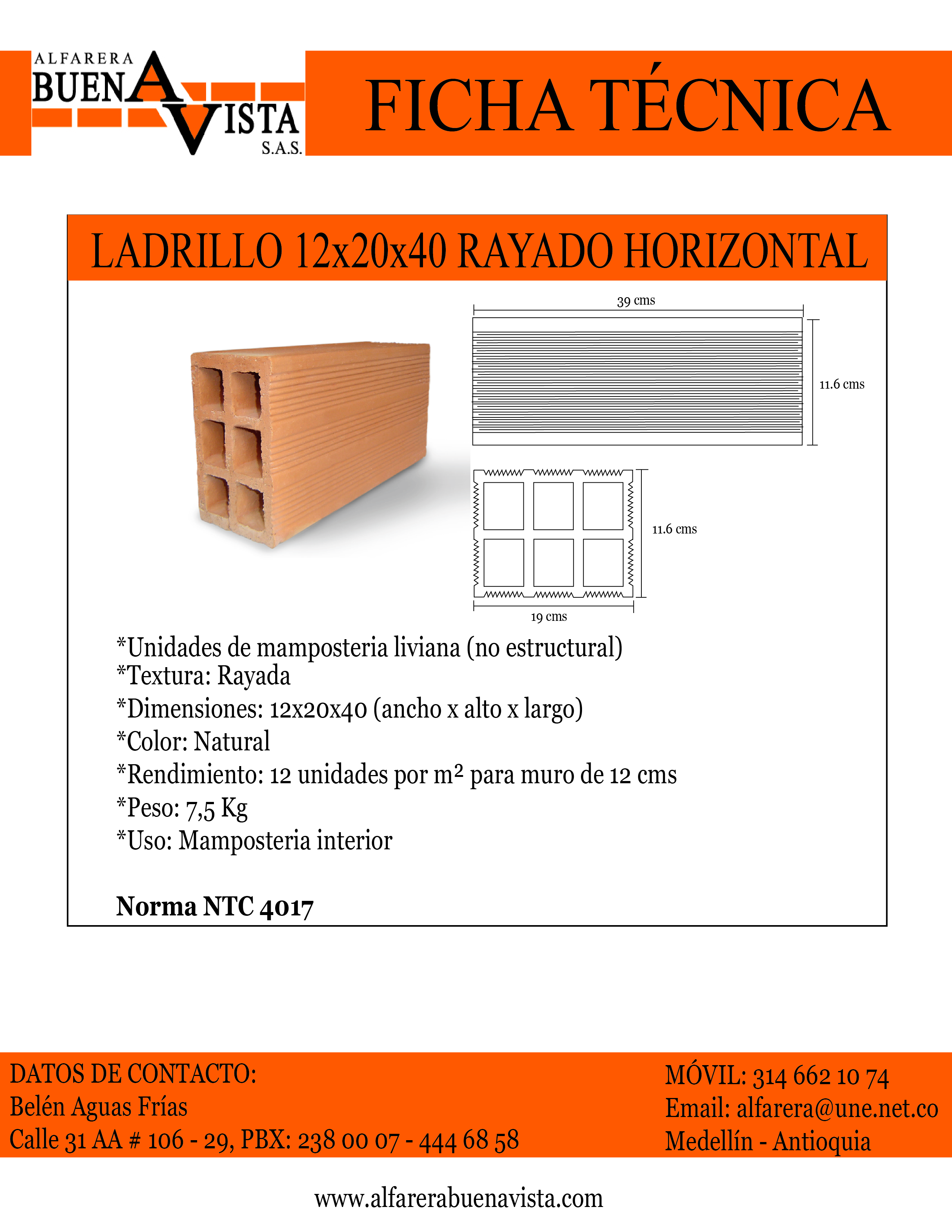 Rendimiento: 12 unidades por m² para muro de 12 cms